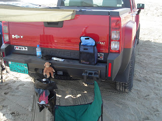 Jim and I went with a group to the Inland Sea. We went with a group through the dunes, which is quite an exciting ride. The group stopped just before entering the dunes and deflated our tires to about 15 psi. The ride was smooth as glass in some sections, and very bumpy in others. It is very difficult to photograph! When we got to our destination, we all backed up to the water and enjoyed a nice picnic for the afternoon. Two of the families had kids with them, and the kids had a great time swimming in the water. Across from our picnic setup is Saudi Arabia, which is just a short swim away! They were the occasional SUV that would come to the shore from the other side and spy on us. As if any of us would want to enter Saudi Arabia via a swim! That is as close to Saudi as I ever want to get!